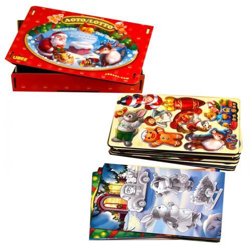 Деревʼяний набір для гри в лотів новорічної тематики. У комплекті є: 48 фішок та 12 карток-полів. Поля мають яскравий, оригінальний дизайн. Правила гри, як у класичному лото. Сприяє розвитку памʼяті, уваги, логіки, координації. Виконано з міцних та екологічно чистих матеріалів.